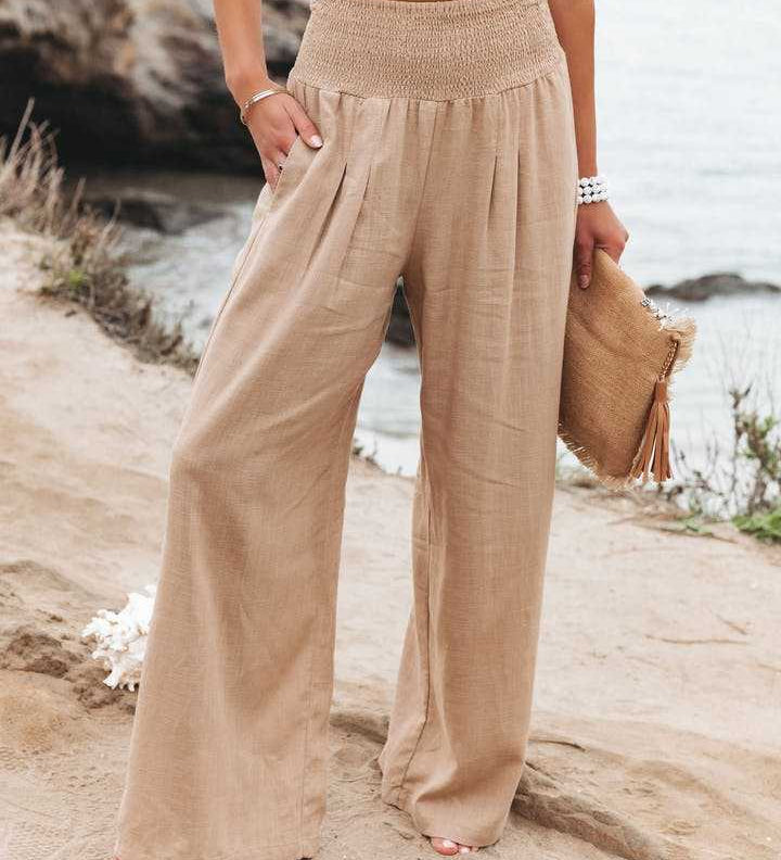 Μαρία - Μπεζ παντελόνια προσαρμοσμένα με φαρδιές πόδες