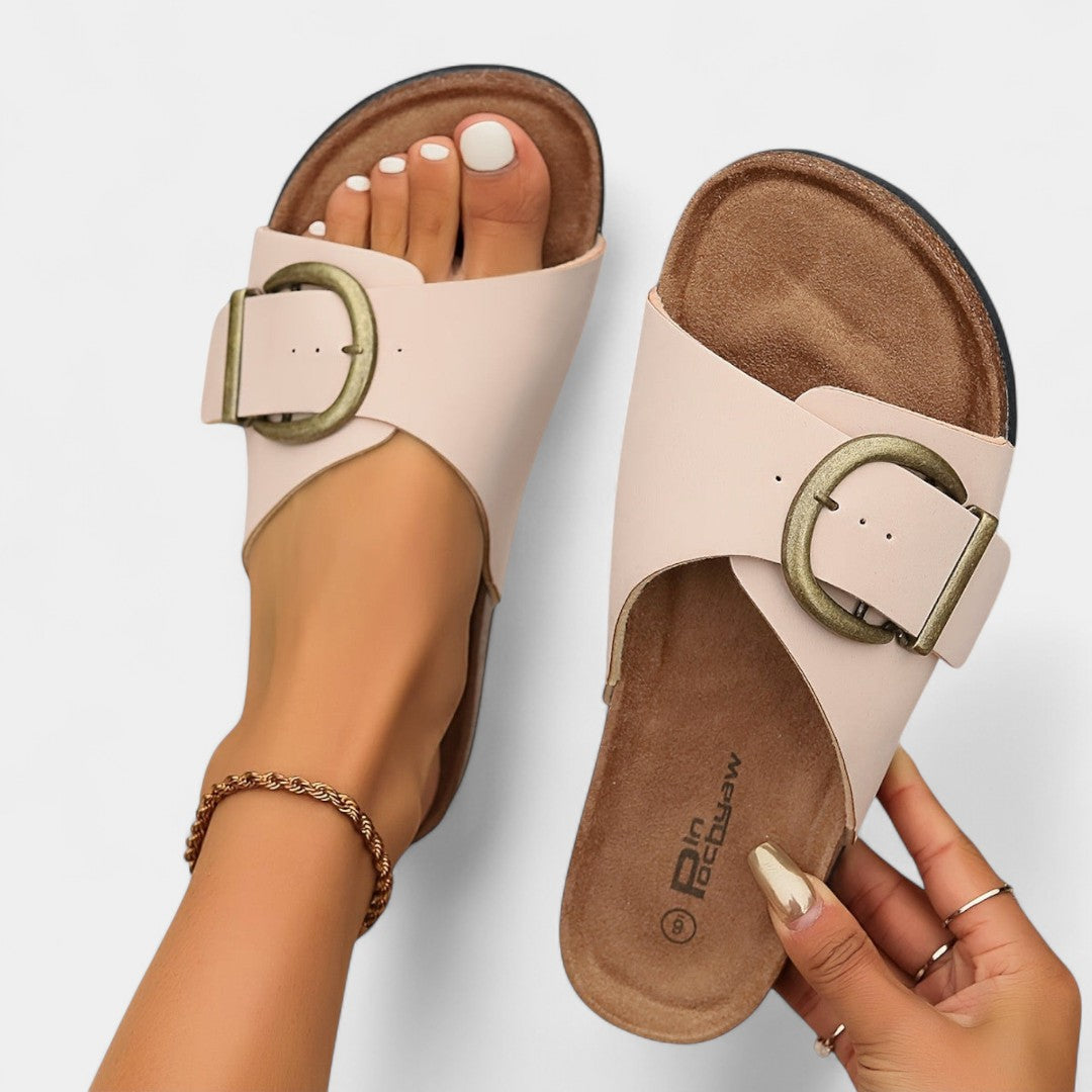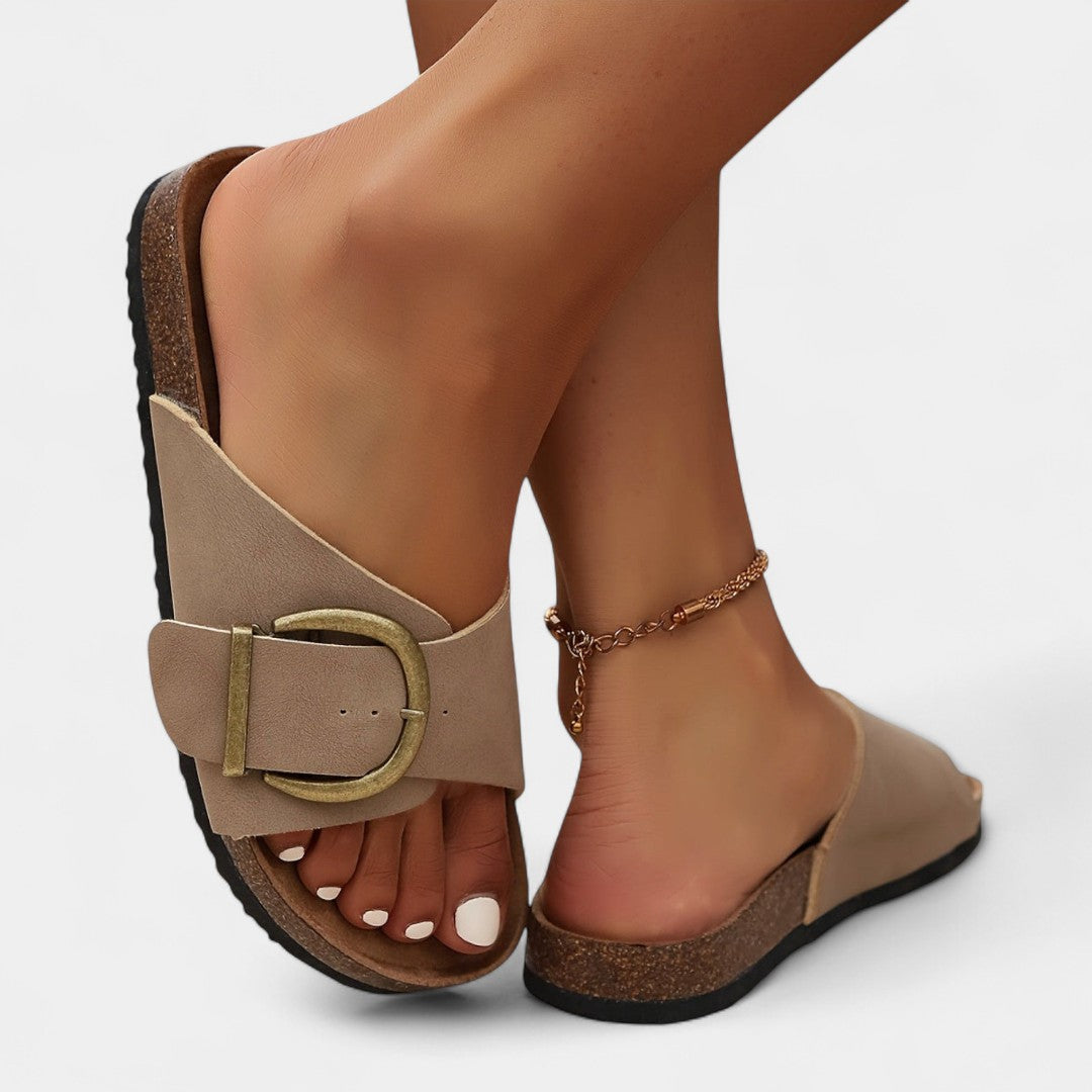 Λουκία - Στυλάτα καλοκαιρινά παντόφλες από φελλό με αγκράφες